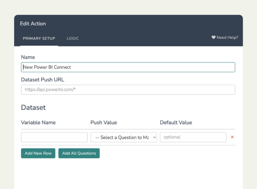 Choose your survey and map fields. Select which survey questions to send and map them to your Power BI dataset fields. -