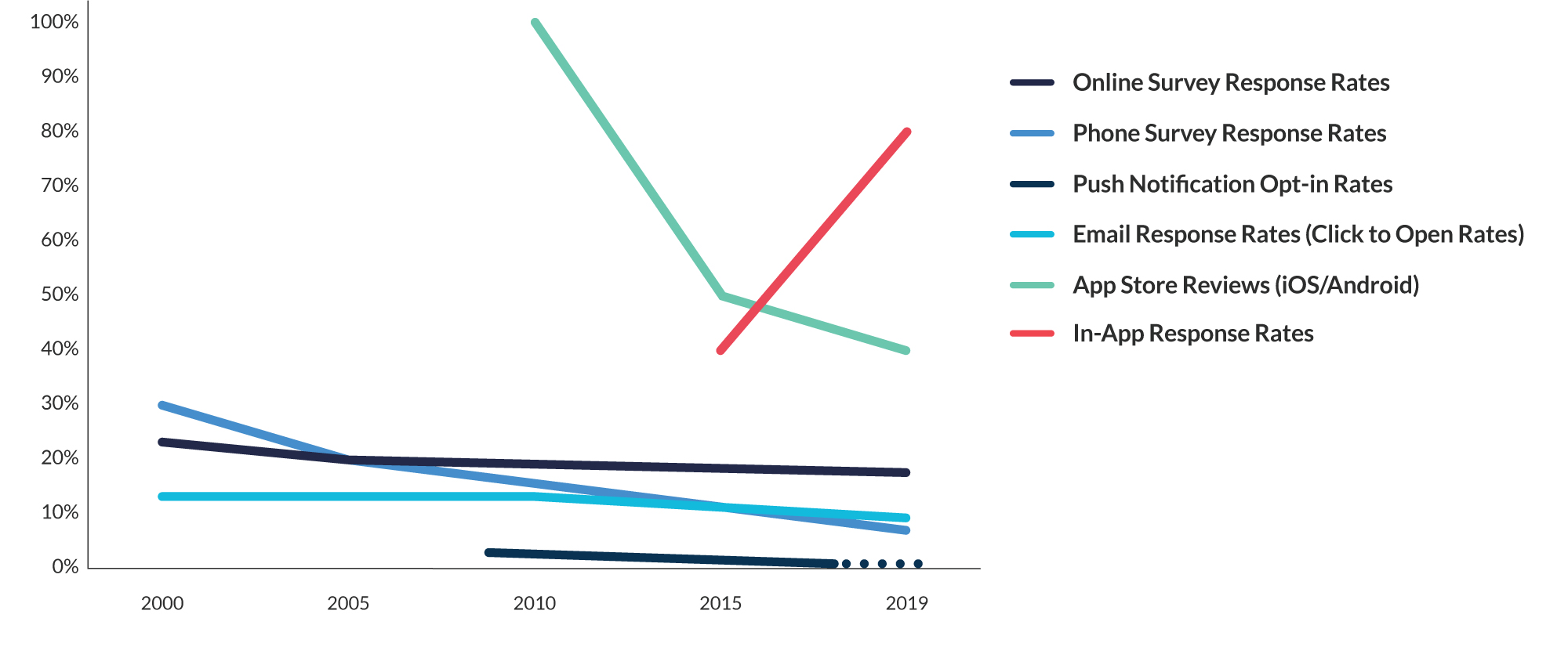 The one area where we’re seeing climbing efficiency, the opportunity to hear from more customers and really understand what’s going on, is actually in context, in-app, proactive communication with customers. When you find customers in their experience, in their mobile apps, on the website, as they’re actually walking through the journey, it’s possible to get much higher response rates around what the sentiment and the emotion in particular around their journey is. And because that set of response rates is climbing year over year, we’re seeing more and more brands really turning to mobile to manage their brand reputation. Because it’s so much more effective in terms of reaching customers, and again, lighting up that silent majority. Moving from a place where 19 out 20 customers aren’t talking to you to perhaps a place where 10 out of 20 customers who are unhappy are talking to you before they leave, is a huge sea change. And that’s one of the reasons why moving into more modern communication channels is really important.